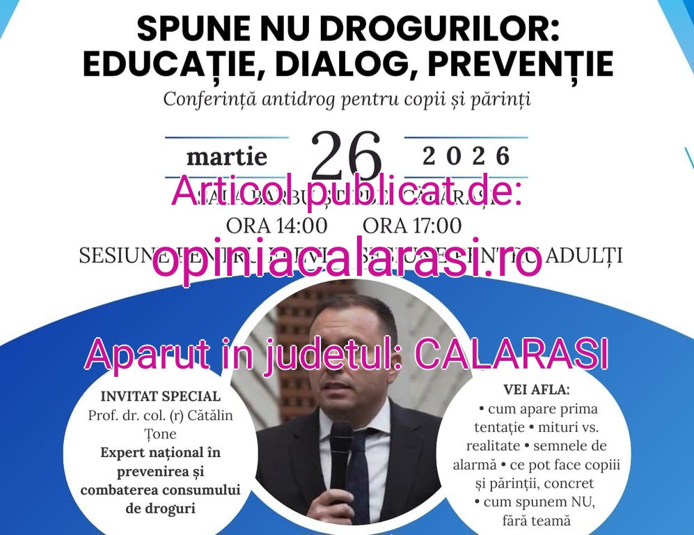 Consiliul Județean al Elevilor Călărași, în parteneriat cu Federația Națională a Părinților din România – Filiala Călărași (FNP Edupart), anunță organizarea conferinței antidrog „SPUNE NU DROGURILOR: EDUCAȚIE, DIALOG, PREVENȚIE”.